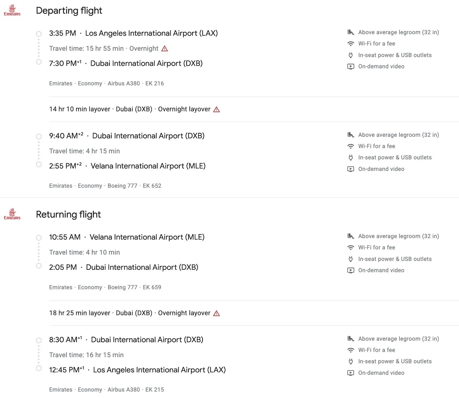 • 1 roundtrip international ticket USA ⇄ Maldives (MLE)